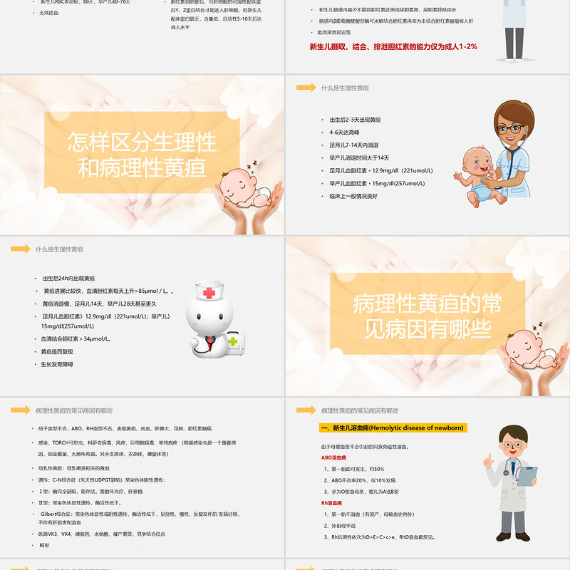 黃疸:出現早(24小時內),程度重(Bi>18-20mg/dl) 貧血:重者心衰;可有后期貧血 肝脾腫大 水腫:胎兒、胎盤水腫病理性黃疸的常見病因有哪些二、新生兒溶血病臨床特點