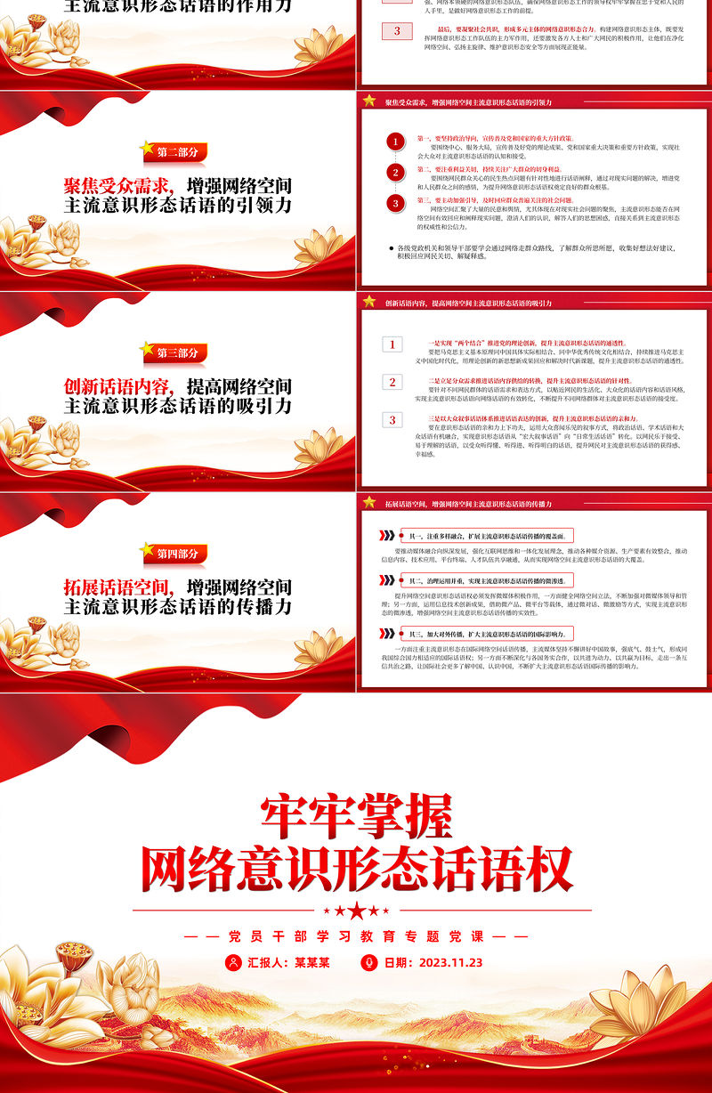 2023紅色大氣牢牢掌握網(wǎng)絡(luò)意識(shí)形態(tài)話語(yǔ)權(quán)PPT黨員干部學(xué)習(xí)教育專題黨課課件下載 Array