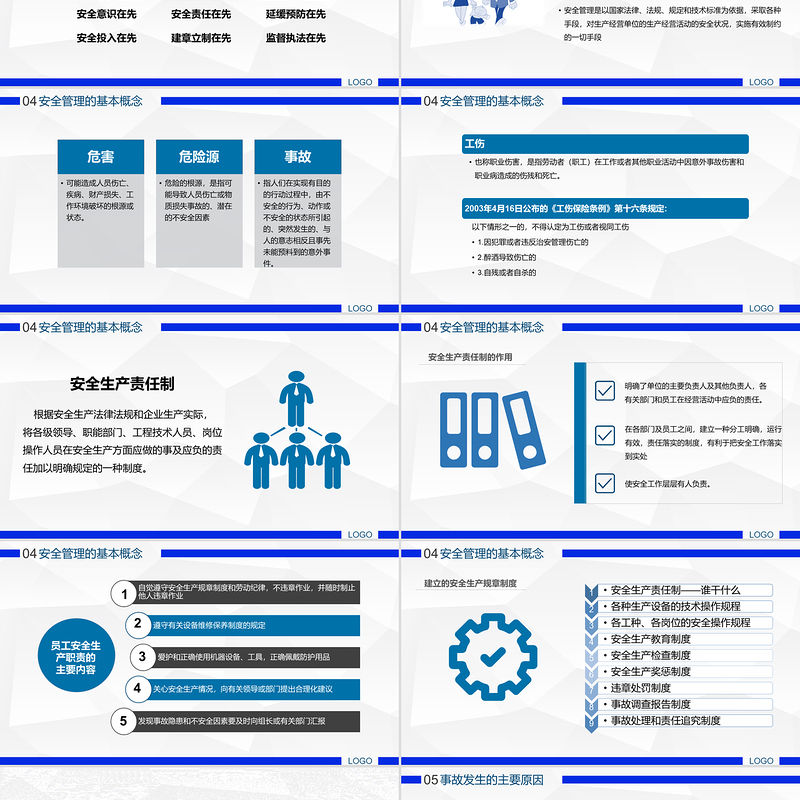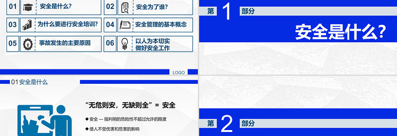 2022新員工崗前安全生產培訓PPT藍色商務風企業員工安全生產培訓課件模板包含