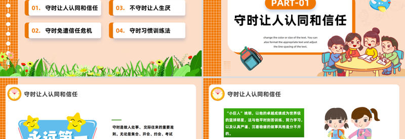 2023做個守時的孩子PPT卡通風中小學生做個守時的孩子主題班會課件模板下載