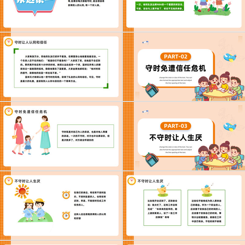 2023做個守時的孩子PPT卡通風中小學生做個守時的孩子主題班會課件模板下載 Array