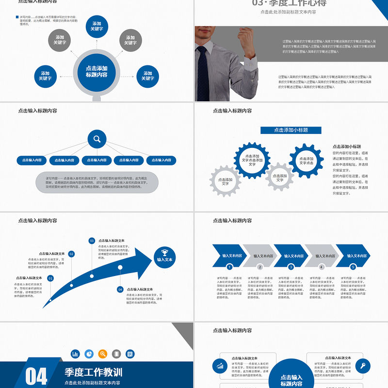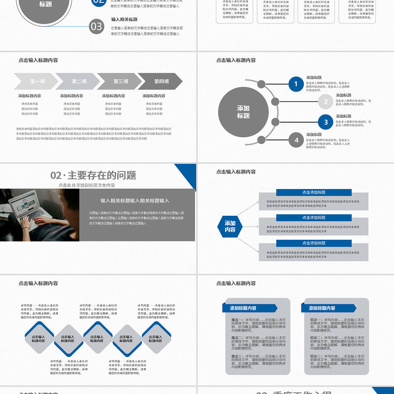 工圖網提供簡約時尚灰藍撞色年終總結計劃書PPT模板供會員免費下載。更多精彩黨課PPT素材,盡在工圖網。
