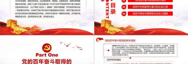 推動中國特色社會主義道路越走越寬廣PPT紅色大氣風黨百年奮斗歷史經驗系列談之堅持中國道路專題課件模板 Array
