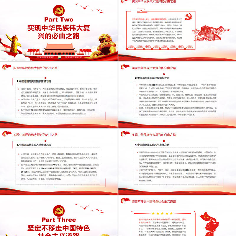 工圖網提供推動中國特色社會主義道路越走越寬廣PPT紅色大氣風黨百年奮斗歷史經驗系列談之堅持中國道路專題課件模板供會員免費下載。更多精彩黨課PPT素材,盡在工圖網。
