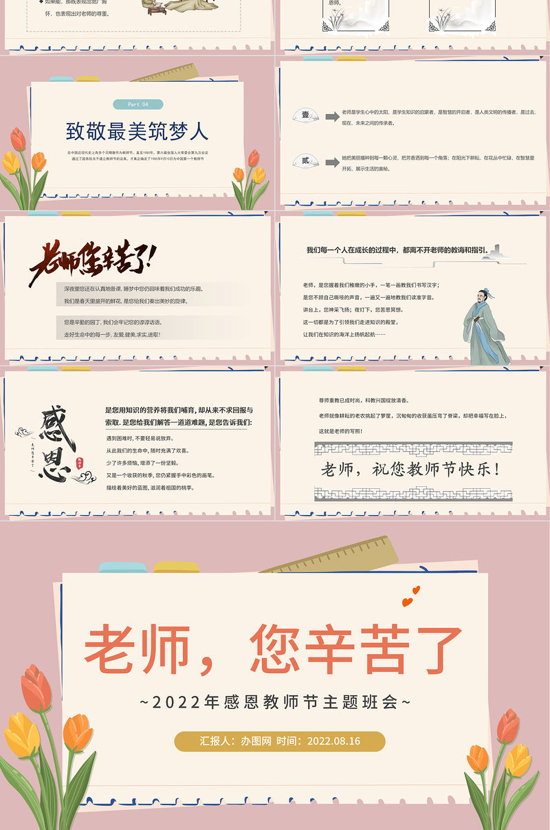 ~2022年感恩教師節主題班會~匯報人:辦圖網 時間:2022.08.16老師,您辛苦了