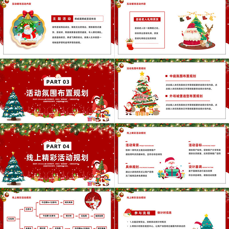 PART 04線上精彩活動規劃圣誕節(Christmas)又稱耶誕節,譯名為“基督彌撒”,它源自古羅馬人迎接新年的農神節,與基督教本無關系。