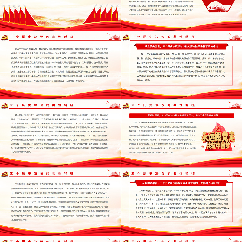 從百年黨史解讀三個(gè)歷史決議PPT紅色大氣深入學(xué)習(xí)三個(gè)歷史決議專題黨課課件模板 Array