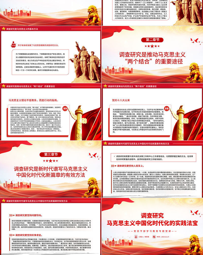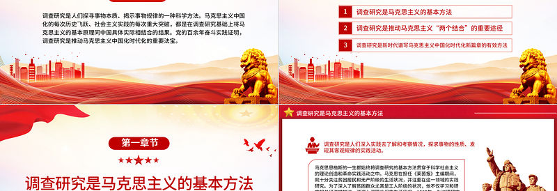 馬克思主義中國化時代化的實踐法寶是調查研究PPT大氣精美風黨員干部學習教育專題黨課課件模板 Array
