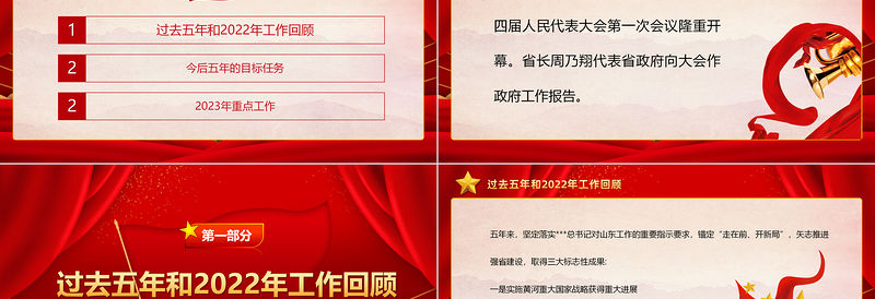 2023年兩會精神山東省政府工作報告PPT大氣精美風黨員干部學習教育專題黨課課件 Array
