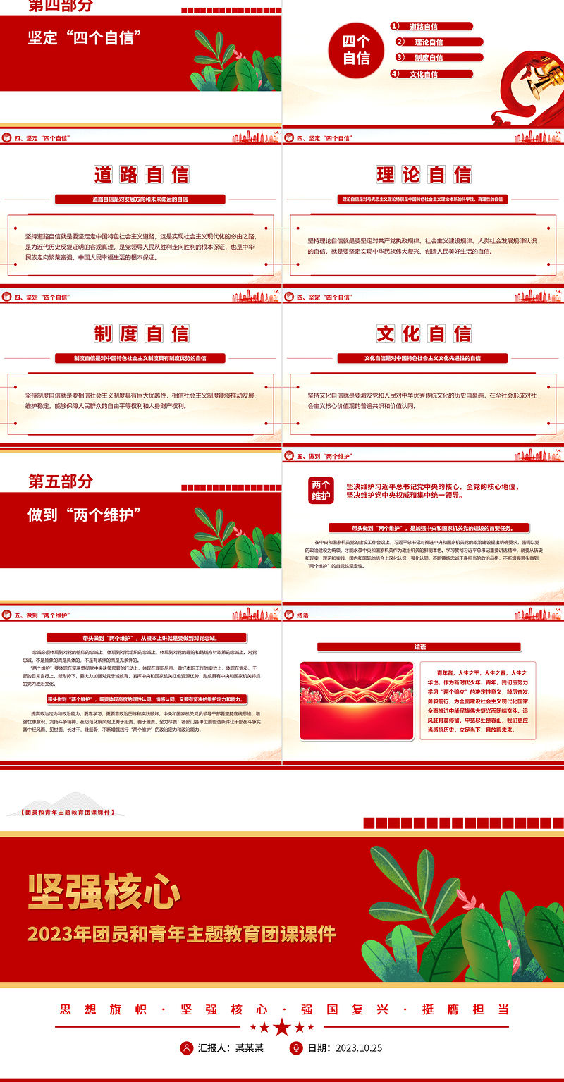 堅強核心PPT紅色黨政風2023年團員和青年主題教育專題團課課件 Array
