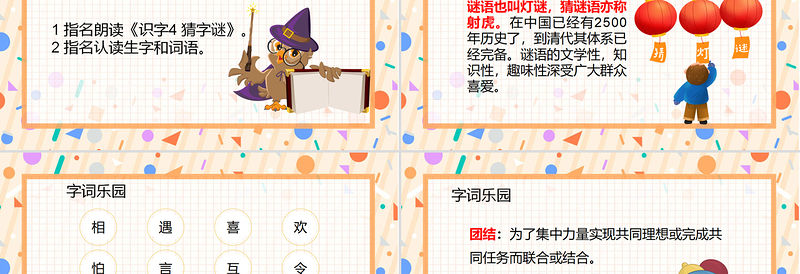 2022猜字謎PPT卡通風識字第4課小學一年級語文下冊人教版教學課件