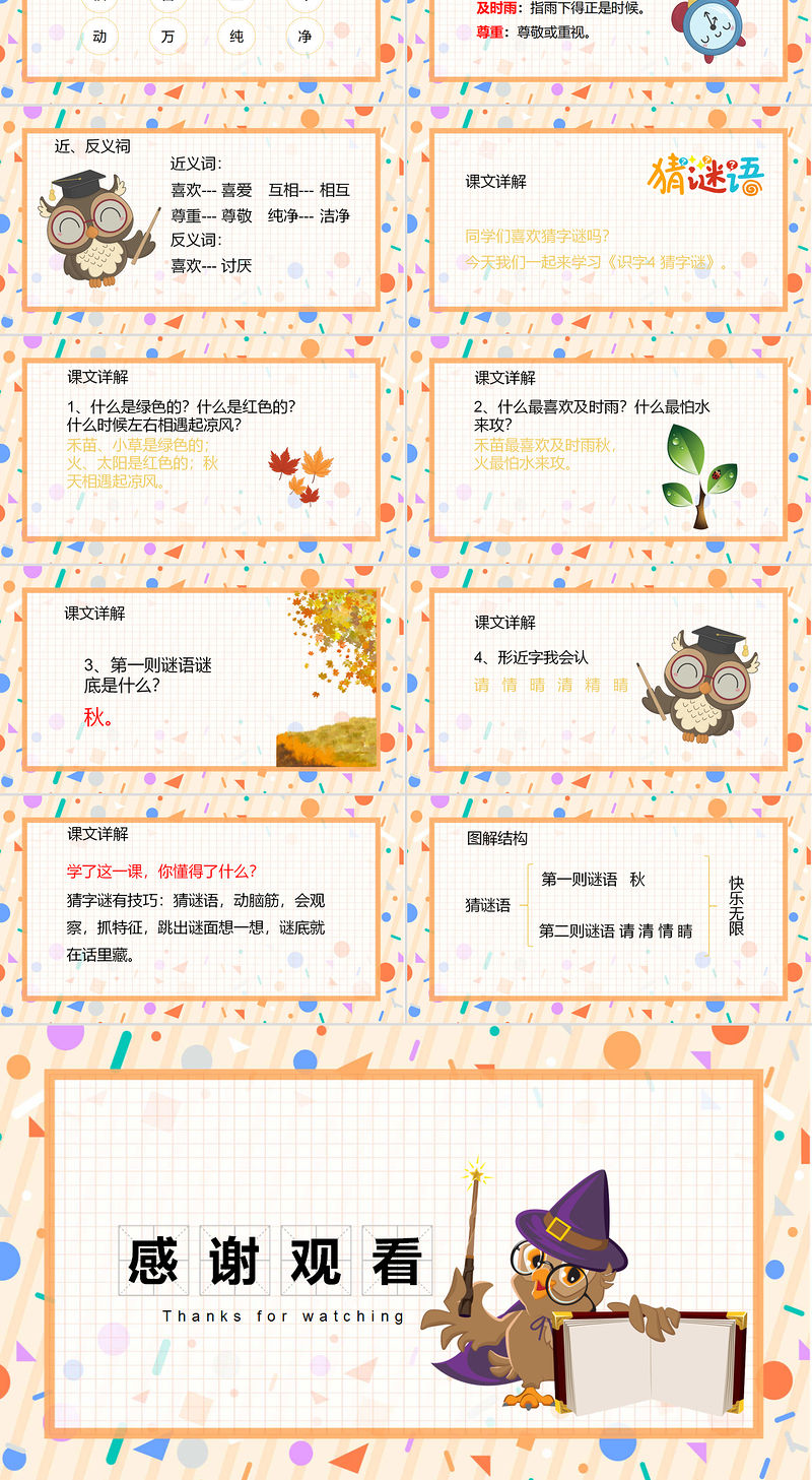 2022猜字謎PPT卡通風識字第4課小學一年級語文下冊人教版教學課件 Array