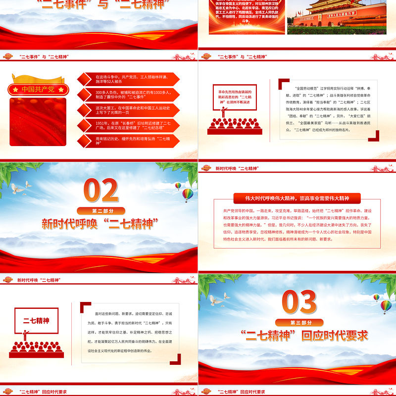 2023新時代呼喚二七精神PPT紅色精美拼搏奉獻進取弘揚二七革命精神黨課 Array