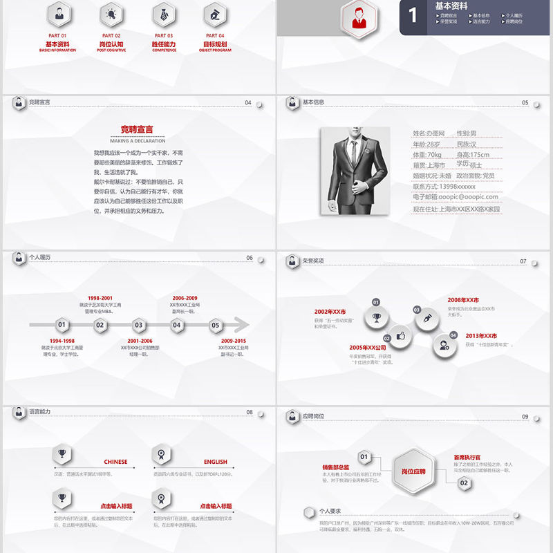 時尚個性競聘PPT模板幻燈片競聘述職報告動態PPT簡約紅色