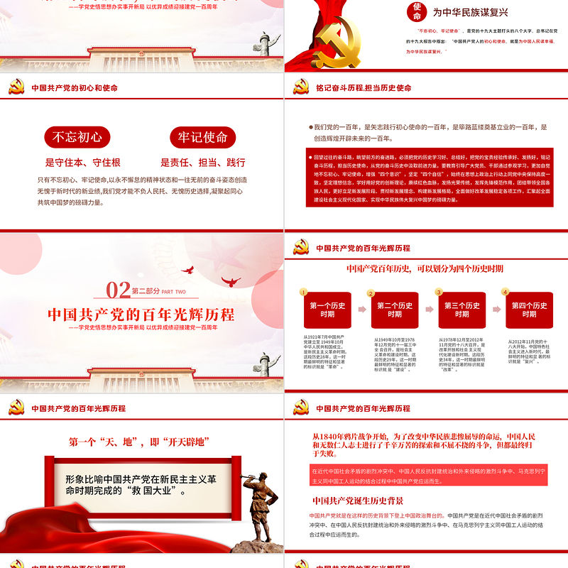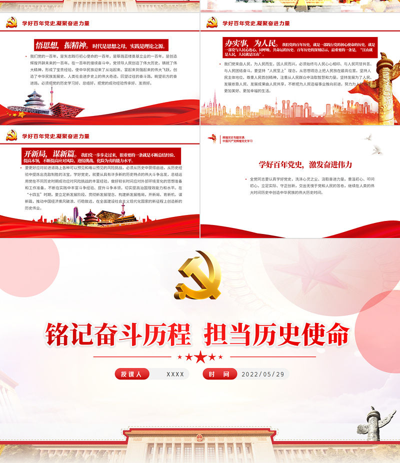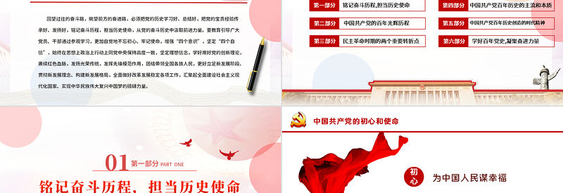 銘記奮斗歷程擔當歷史使命歷史PPT大氣黨建風中國共產黨的輝煌黨史黨課學習教育課件模板 Array