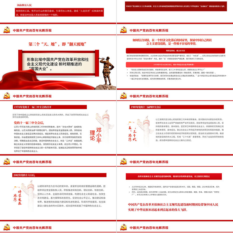 中國共產黨的百年光輝歷程 形象比喻中國共產黨在改革開放和社會主義現代化建設 新時期推進的“富國大業”。 第三個“天、地”,即“翻天覆地”