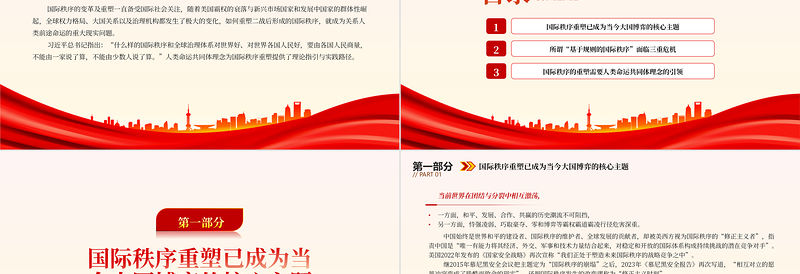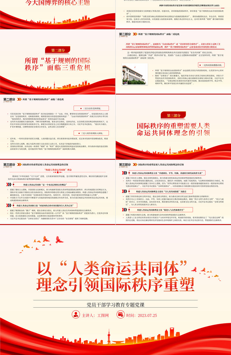 2023以“人類命運共同體”理念引領國際秩序重塑PPT大氣精美風黨員干部學習教育專題黨課課件 Array