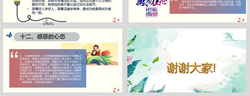 十二、感恩的心態我們是一群不具備獨立成功的人,我們之所以能成功,是因為公司給我們提供了一個千載難逢的機會,我們要感恩于公司。還要感恩于介紹你加入這個事業中的人,是他使您擁有了自己的事業,他是您一生的貴人。人人知情,人人感恩,營銷環境才會其樂融融。奮斗中才會有快樂,成功時更是其樂無窮。