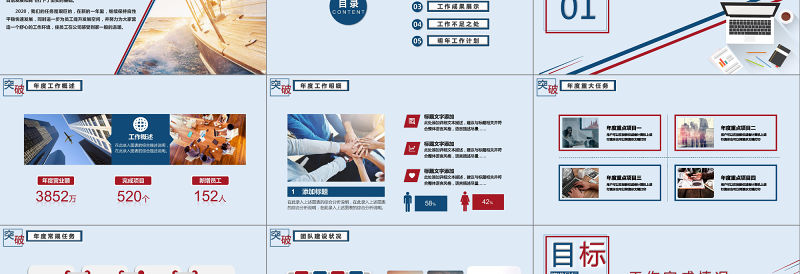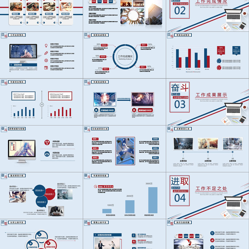 豬年 述職報告 公司 年度 年終模板 2019 工作匯報 PPT模板欣賞 新年計劃 年終總結 商務通用工作匯報 框架完整實用 工作總結 模板 紅藍 通用模板 簡約模板 Array