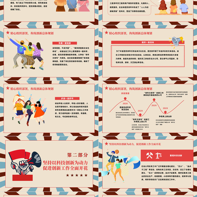 > 匯報(bào)|報(bào)告PPT > 2023我的青春我的夢PPT時(shí)尚卡通風(fēng)青年文明號匯報(bào)材料課件模板下載.PPTX 【圖片、文字、動畫均可編輯】