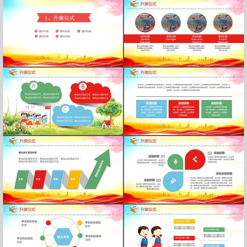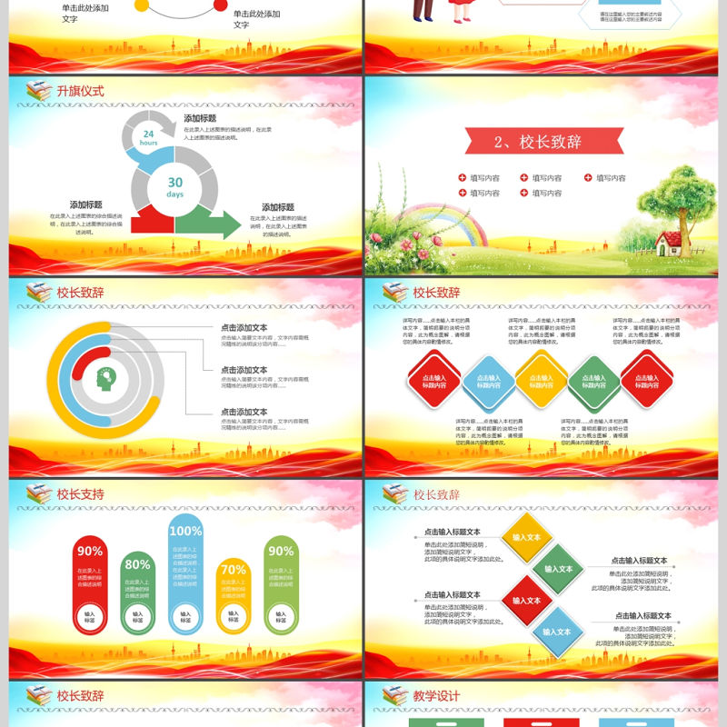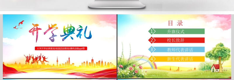 2022新學期開學典禮PPT卡通插畫風春季開學典禮課件模板包含