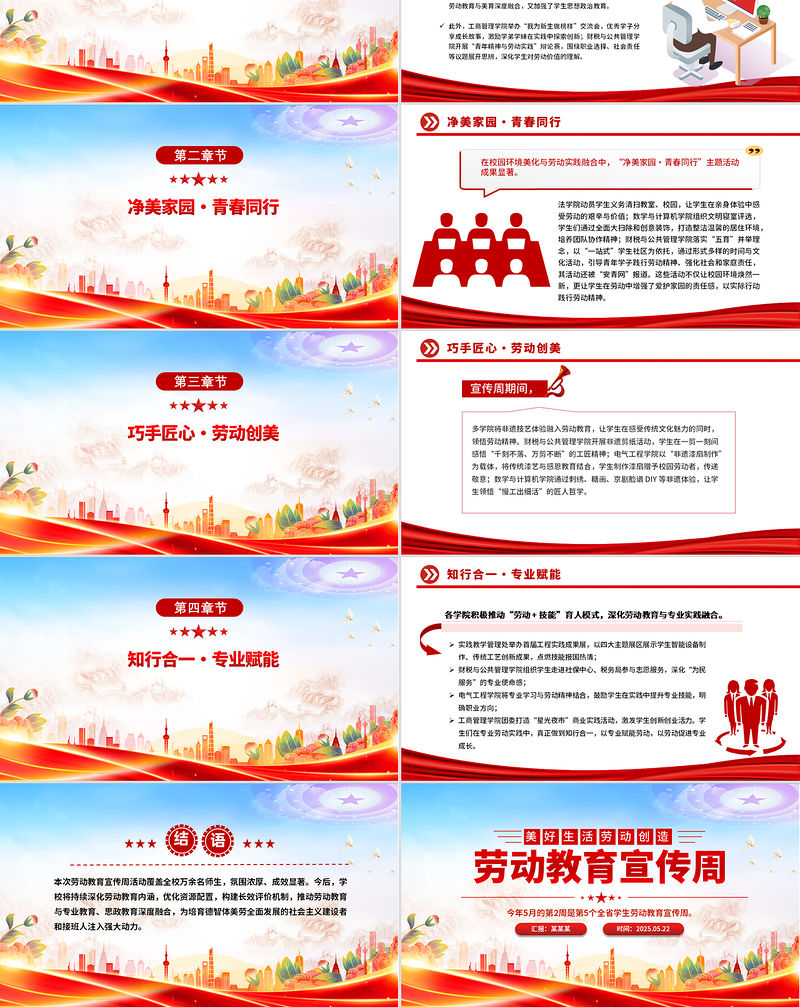 勞動教育宣傳周PPT紅色精美美好生活勞動創造主題活動模板
