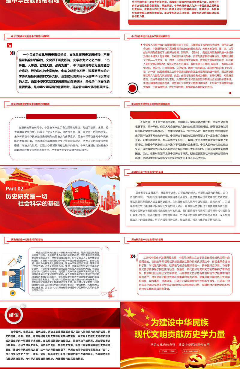 2023為建設中華民族現代文明貢獻歷史學力量ppt紅色大氣風堅定文化自信自強,建設中華民族現代文明基層干部黨員黨課課件 Array