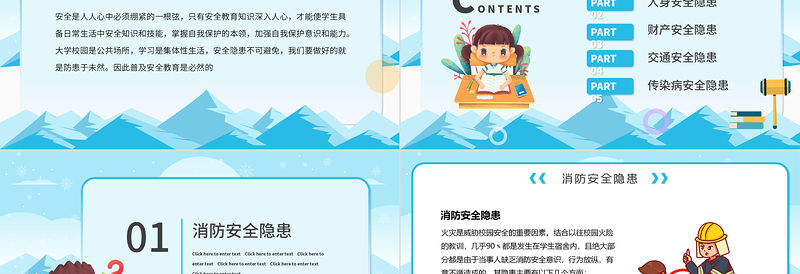 PART 01消防安全隱患PART 02人身安全隱患PART 03財(cái)產(chǎn)安全隱患PART 04交通安全隱患CONTENTS目 錄PART 05傳染病安全隱患