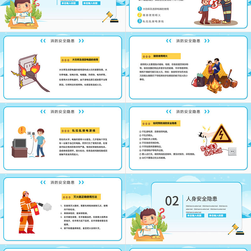 消防安全隱患單擊輸入標(biāo)題單擊輸入標(biāo)題Click here to enter text Click here to enter text Click here to enter text Click here to enter text Click here to enter text Click here to enter text 01