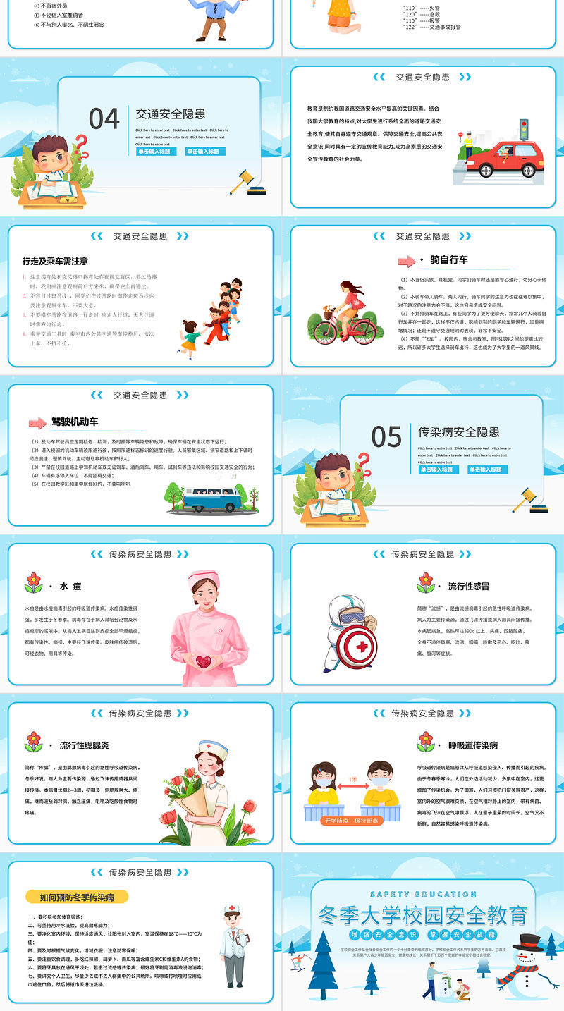 冬季大學(xué)校園安全教育PPT卡通扁平風(fēng)消防人身財(cái)產(chǎn)交通安全宣講課件