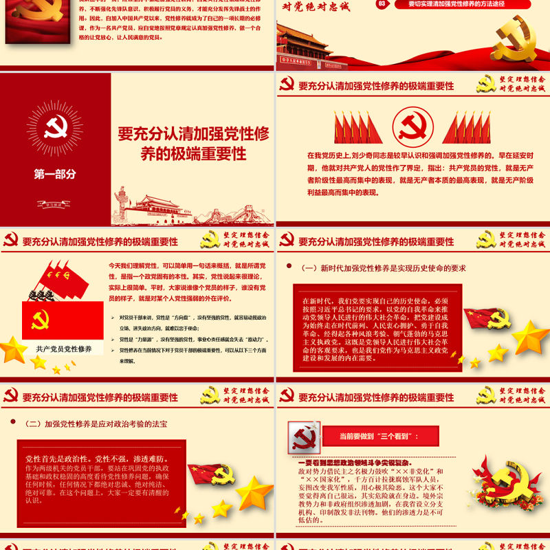 要充分認清加強黨性修養的極端重要性今天我們理解黨性,可以簡單用一句話來概括,就是所謂黨性,是指一個政黨固有的本性。其實,黨性說起來很理論,實際上很簡單。平時,大家說誰像個黨員的樣子,誰沒有黨員的樣子,就是對某個人黨性強弱的外在評價。對黨員干部來講,黨性是“方向盤”,沒有堅強的黨性,就容易動搖政治立場、迷失政治方向,就難以忠于使命; 黨性是“力量源”,沒有堅強的黨性,事業心責任感就會失去“原動力”。 黨性修養在當前情況下對于黨員干部的極端重要性,可以從以下三個方面來理解。