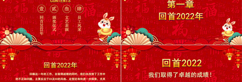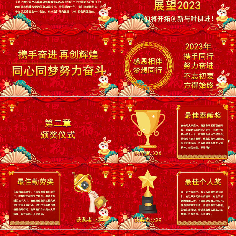 2023開門紅PPT紅色喜慶中國風兔年大吉新春開門紅啟動會企業年會頒獎典禮模板