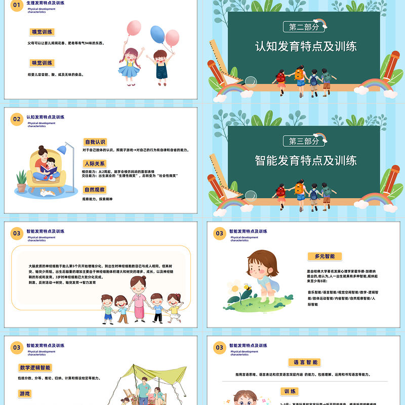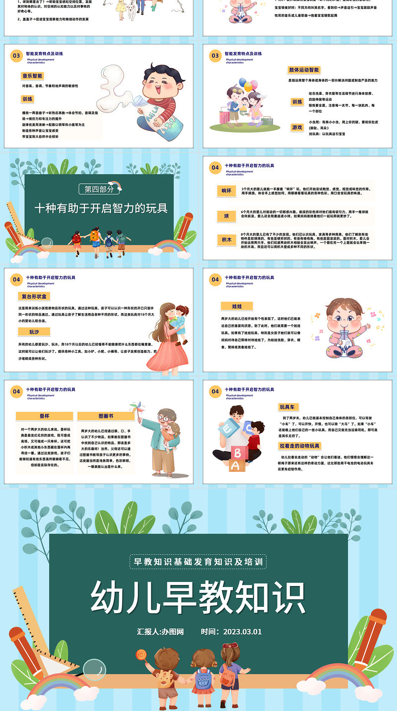 2023幼兒早教知識PPT卡通風幼兒園早教知識基礎發育知識及訓練培訓課件模板下載 Array