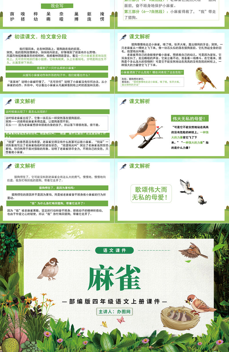 —部編版四年級語文上冊課件—主講人:辦圖網麻雀