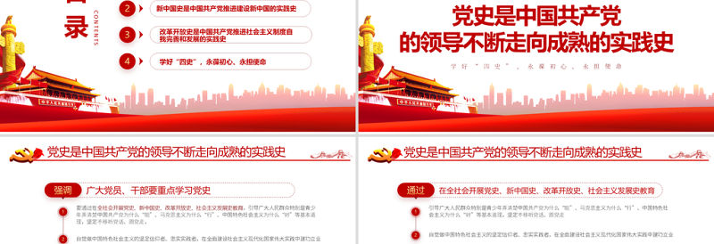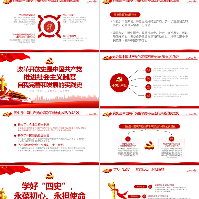 永葆初心 擔當使命 PPT 大氣 中國風 黨史 新中國史 革開放史 四史學習教育 專題黨課 課件 Array