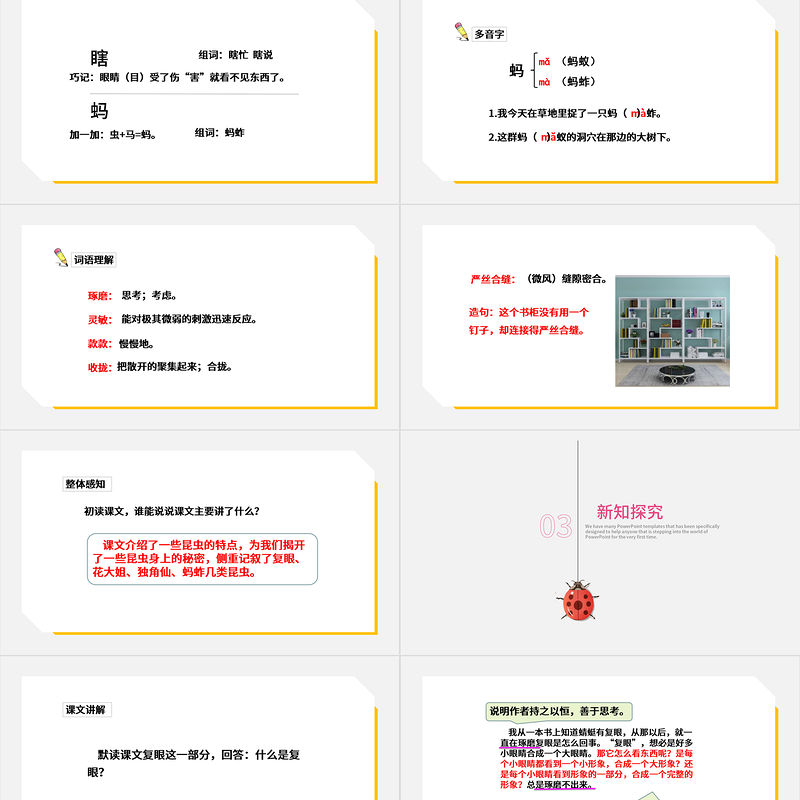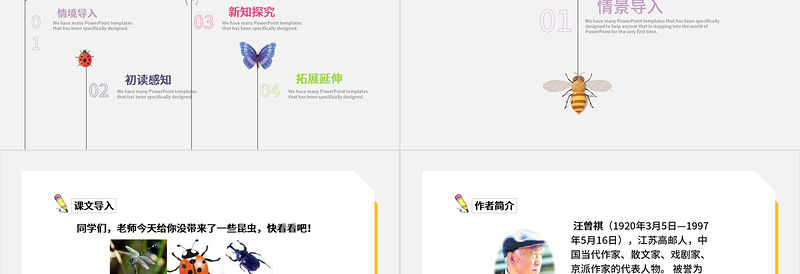 昆蟲備忘錄部編版三年級下冊語文課件We have many PowerPoint templates that has been specifically designed to help anyone that is stepping into the world of PowerPoint for the very first time.老師:辦圖網時間:2022.7