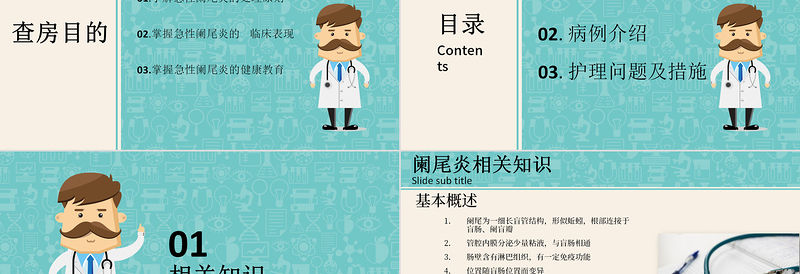 2022急性闌尾炎護理查房PPT清新插畫風護理查房通用PPT