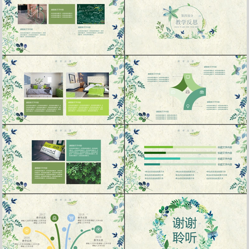 原創創意淡雅文藝小清新教師說課動態PPT模板-版權可商用包含