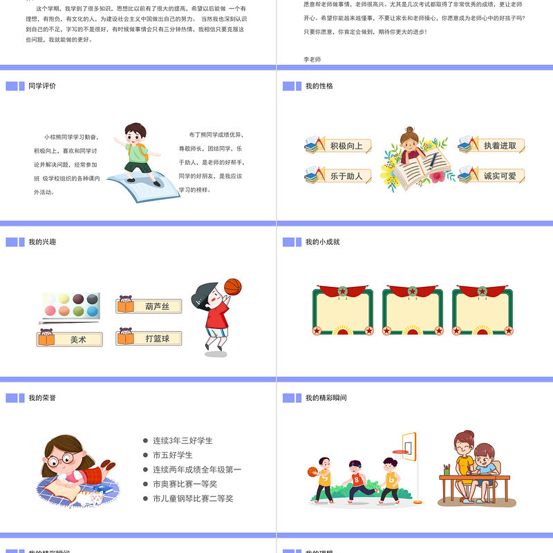 2021大隊委競選PPT藍色清新卡通開學季班委班干部競選自我介紹模板下載包含