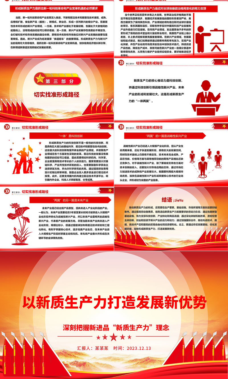 以新質(zhì)生產(chǎn)力打造發(fā)展新優(yōu)勢(shì)匯報(bào)人:某某某 時(shí)間:2023.12.13深刻把握新進(jìn)品“新質(zhì)生產(chǎn)力”理念