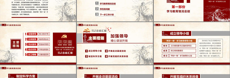 工圖網提供紅色黨政兩學一做工作總結匯報PPT模板供會員免費下載。更多精彩黨課PPT素材,盡在工圖網。