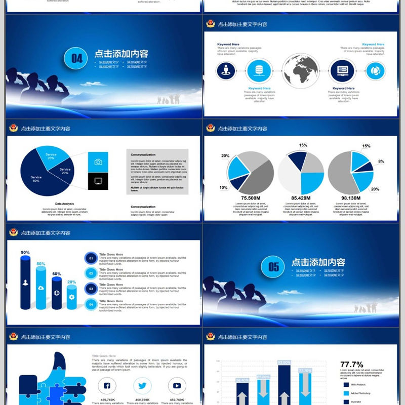 大氣簡潔藍色工作總結年終總結匯報工作計劃動態PPT模板包含