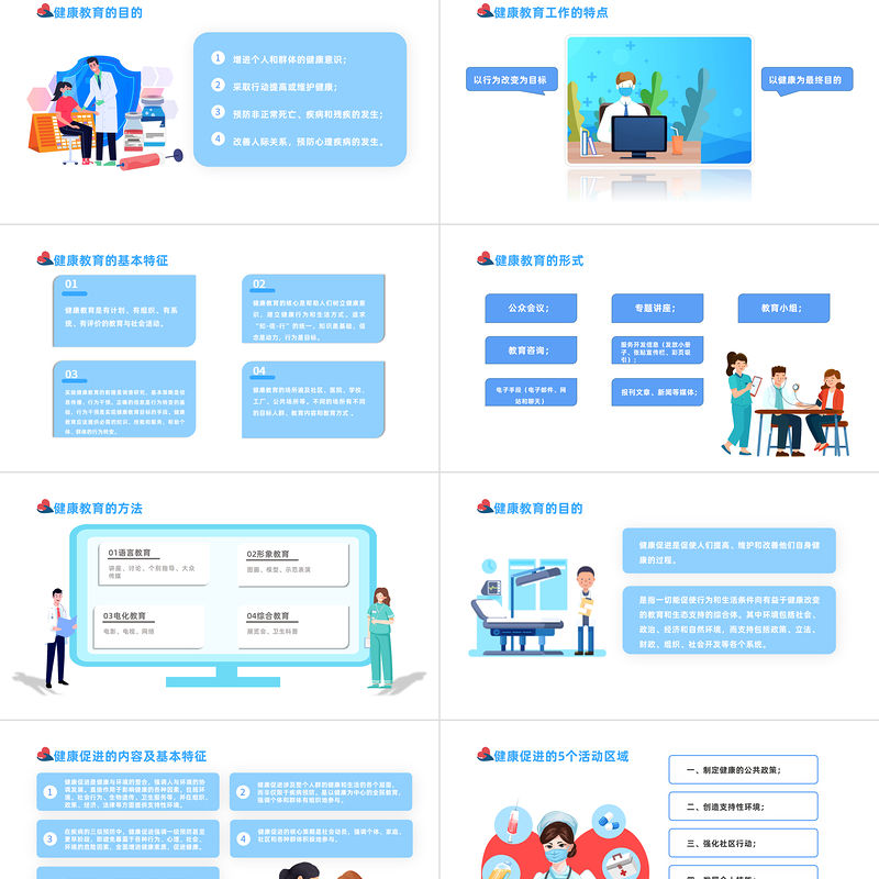2022健康教育與健康促進PPT藍色卡通風健康教育知識講座主題班會課件模板