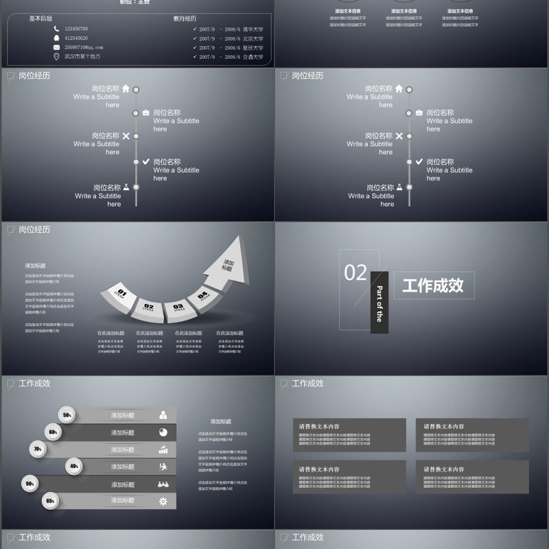 黑金色大氣快閃個人簡歷PPT模板包含