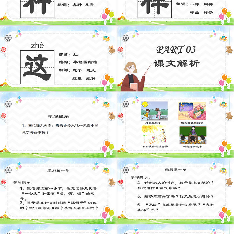 學(xué)習(xí)提示:1、跟老師讀第一小節(jié),注意讀好兒化音“一會兒”和帶有“唉、啊、呢”的句子。2、孩子是在什么時候玩“踩影子”游戲的?他們玩得怎么樣?從哪兒看出來的?學(xué)習(xí)第一節(jié)