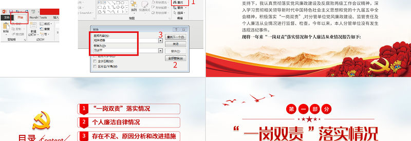 Contents目錄“一崗雙責”落實情況1個人廉潔自律情況 2存在不足、原因分析和改進措施 3下步工作4