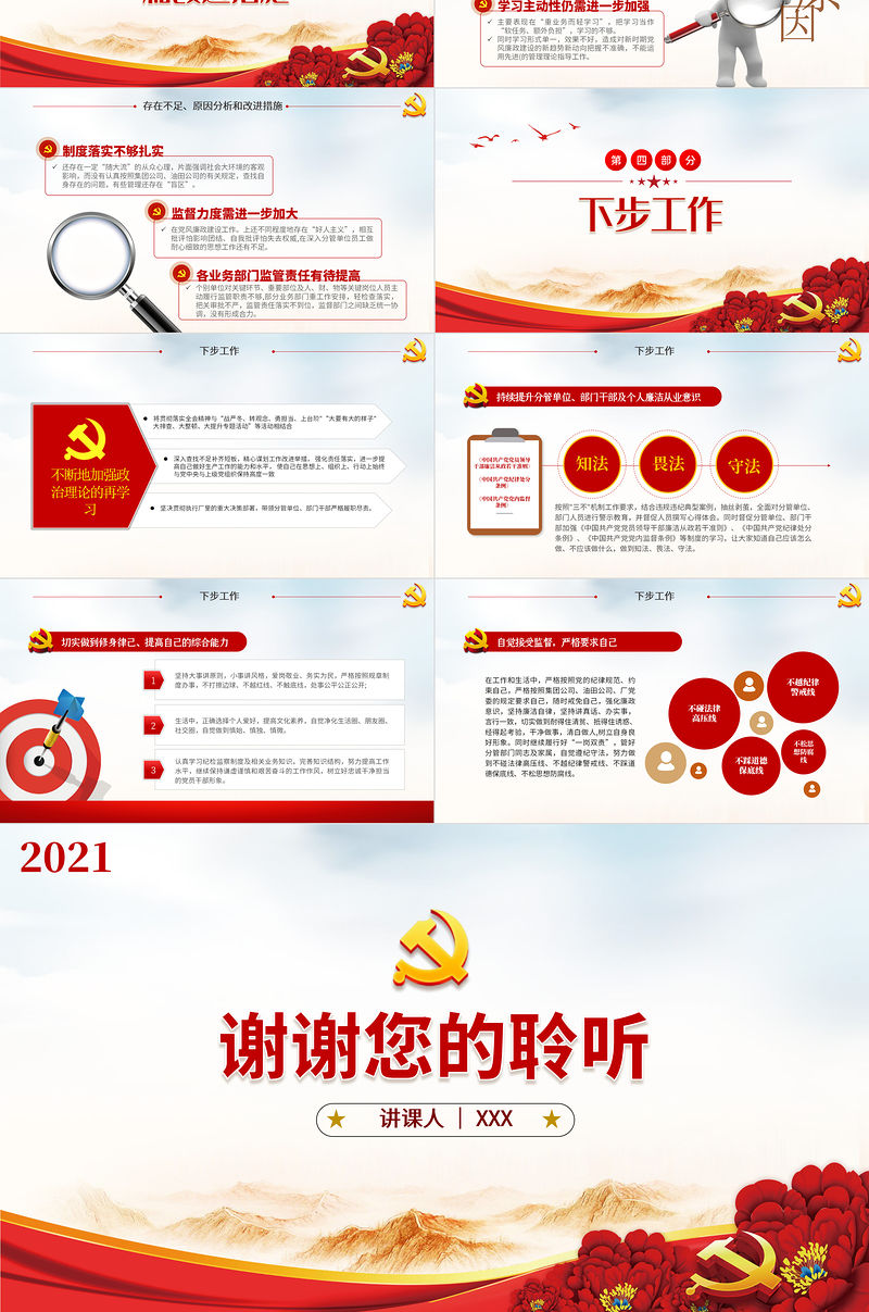 堅持大事講原則,小事講風格,愛崗敬業、務實為民,嚴格按照規章制度辦事,不打擦邊球、不越紅線、不觸底線,處事公平公正公開;生活中,正確選擇個人愛好,提高文化素養,自覺凈化生活圈、朋友圈、社交圈,自覺做到慎始、慎獨、慎微。認真學習紀檢監察制度及相關業務知識,完善知識結構,努力提高工作水平,繼續保持謙虛謹慎和艱苦奮斗的工作作風,樹立好忠誠干凈擔當的黨員干部形象。 下步工作