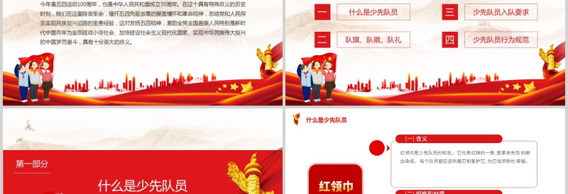 2021鮮艷的紅領(lǐng)巾PPT紅色卡通中國少年先鋒隊(duì)少先隊(duì)禮儀基本規(guī)范主題課件模板