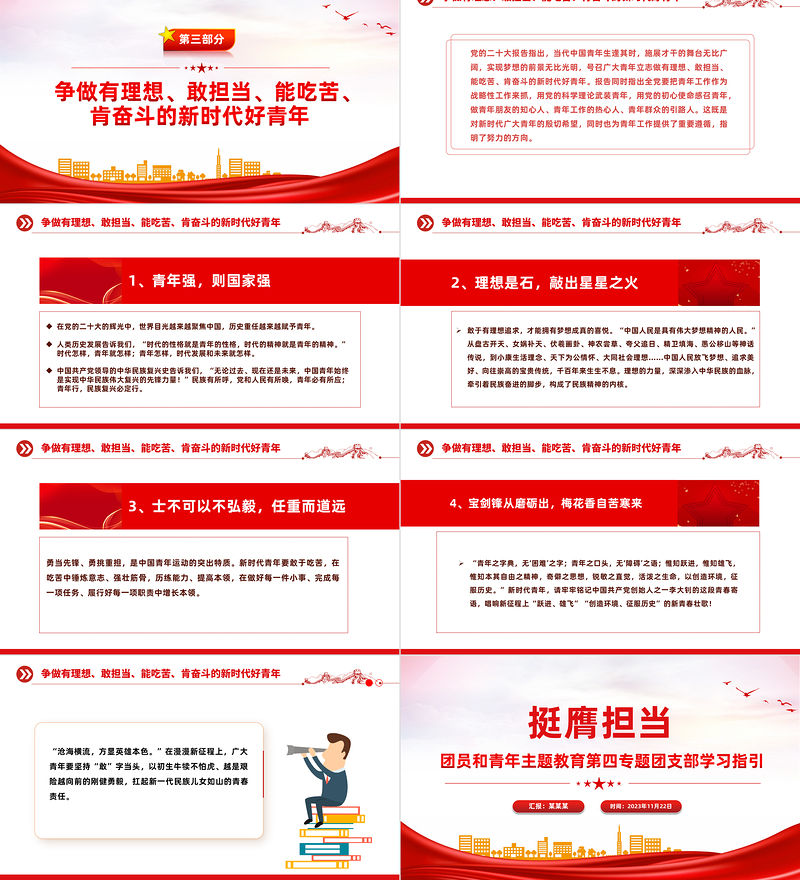 主題教育團課挺膺擔當PPT紅色大氣2023年團員和青年主題教育專題團課下載 Array