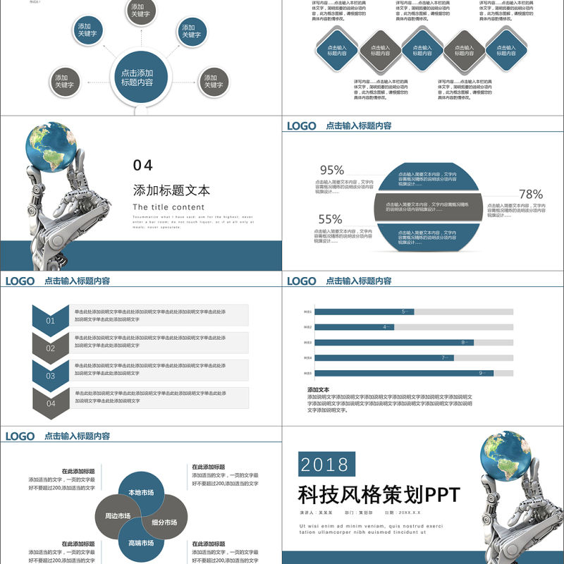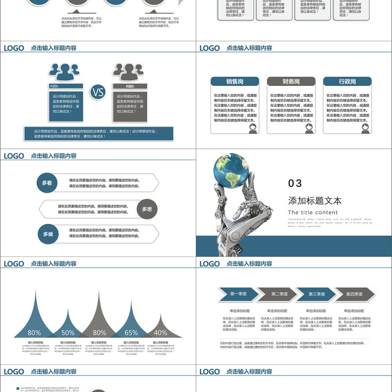 簡潔大氣藍色商業計劃書ppt模板幻燈片包含